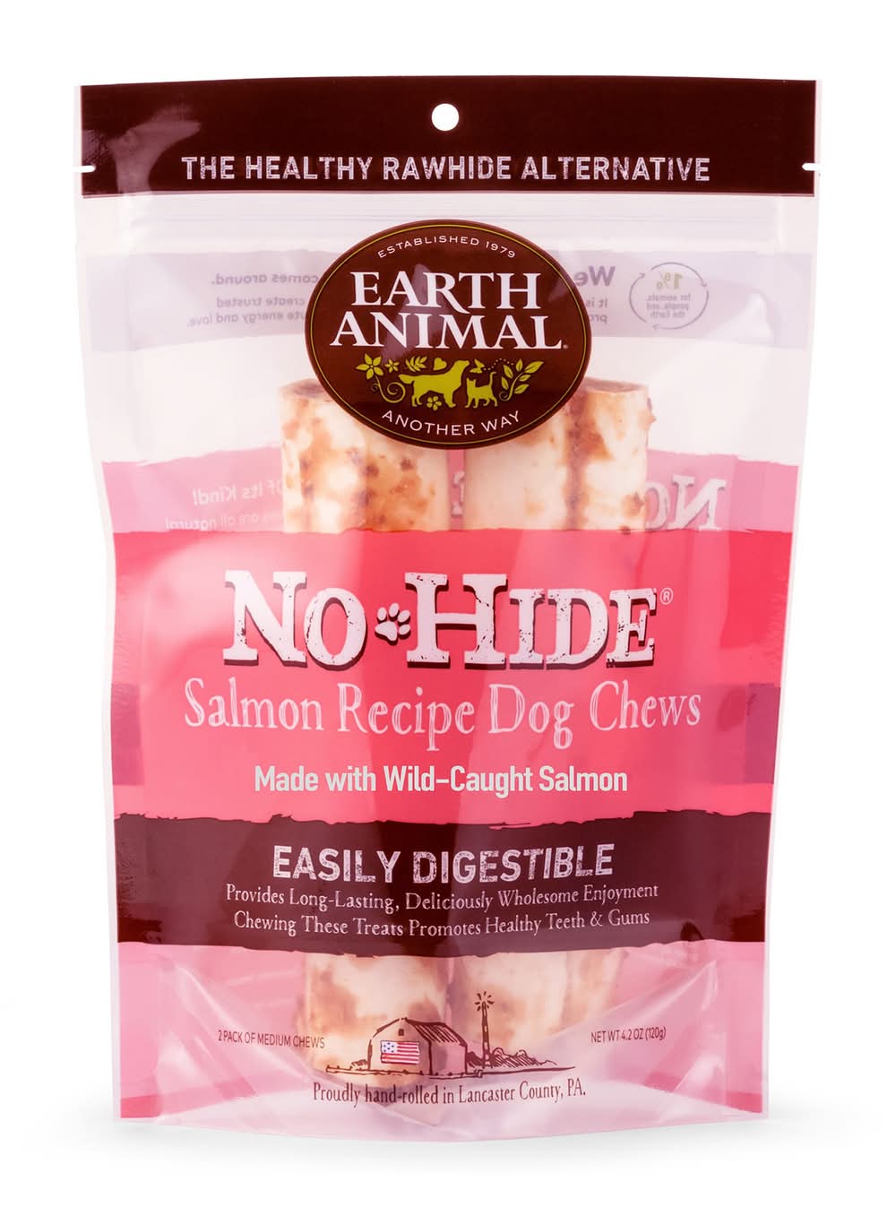 Earth Animals No Hide Medium Roll Rawhide Alternative- 2 Count 4.2 OZ (Flavor: Salmon)