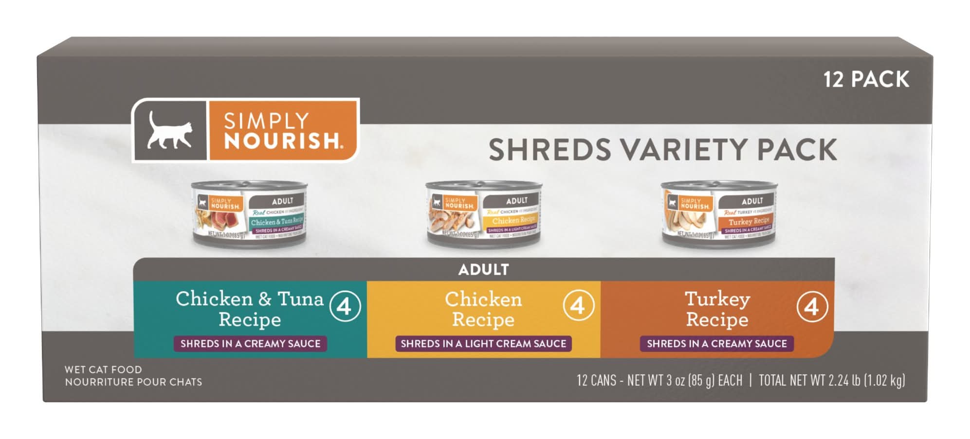 Simply Nourish® Cat Wet Food - 36 Oz, Natural, Shreds in a Light Cream Sauce, With-Grain (Size: 12 Ct)