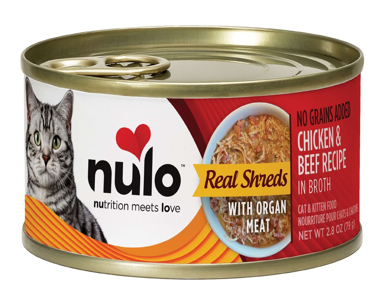 Nulo Real Shreds with Organ Meat All Life Stages Cat Wet Food - Grain Free, In Broth, 2.8 Oz (Flavor: Chicken & Beef, Size: 2.8 Oz)