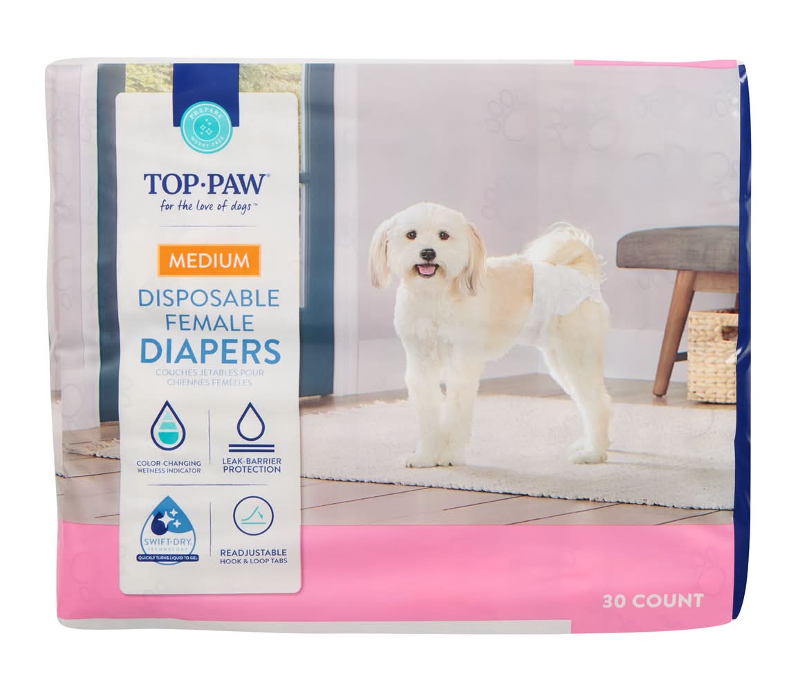 Top Paw Disposable Diapers 30 Pack (Color: White, Size: Medium)