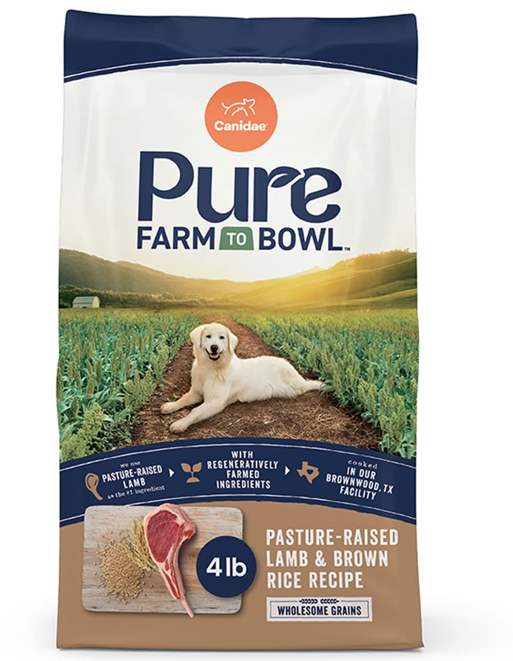Canidae Pure Farm To Bowl Adult Dog Food - Pasture-Raised Lamb & Brown Rice Recipe, 4 lbs. (Flavor: Lamb & Brown Rice, Size: 4 Lb)