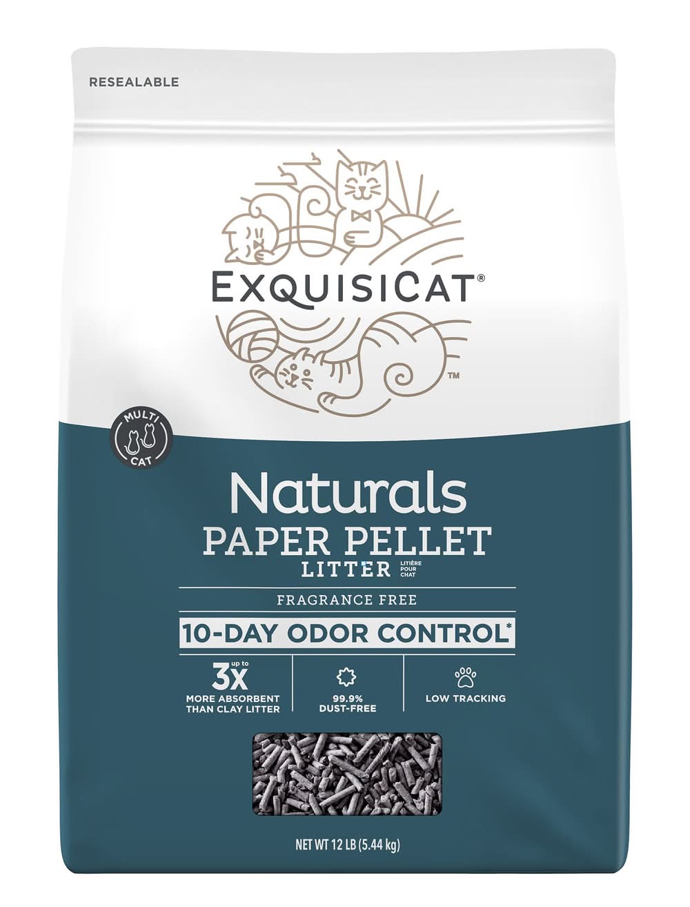 ExquisiCat Litter Multi-Cat Paper Pellet Cat Litter - Unscented, Low Dust, Low Tracking, Natural (Size: 12 Lb)