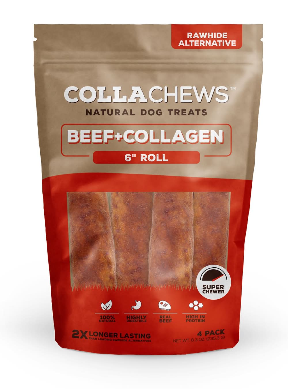 Collachews™ Beef + Collagen Rawhide Free 6\" Roll Dog Treat - Beef, 4 Count (Flavor: Beef, Size: 4 Count)