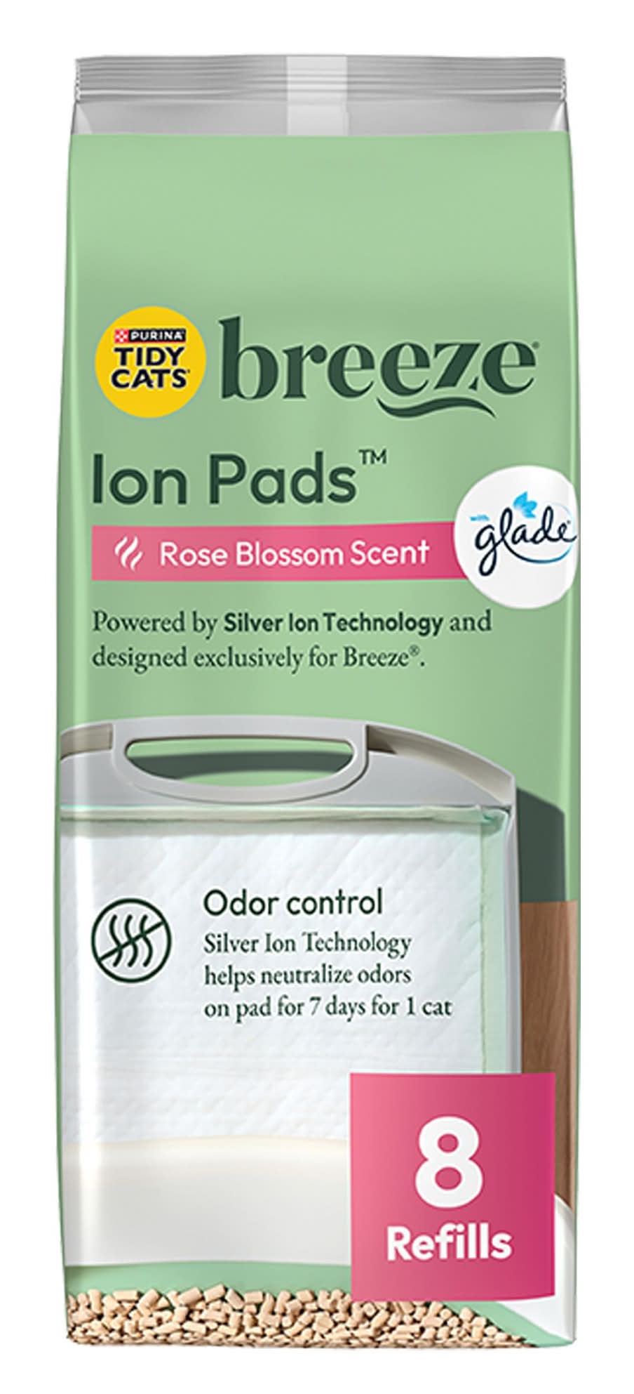 Purina Tidy Cats Breeze Cat Litter Box Pads Refill Pack With Glad - Garden Grove Scent, 8 Count (Color: Green, Size: 8 Ct)