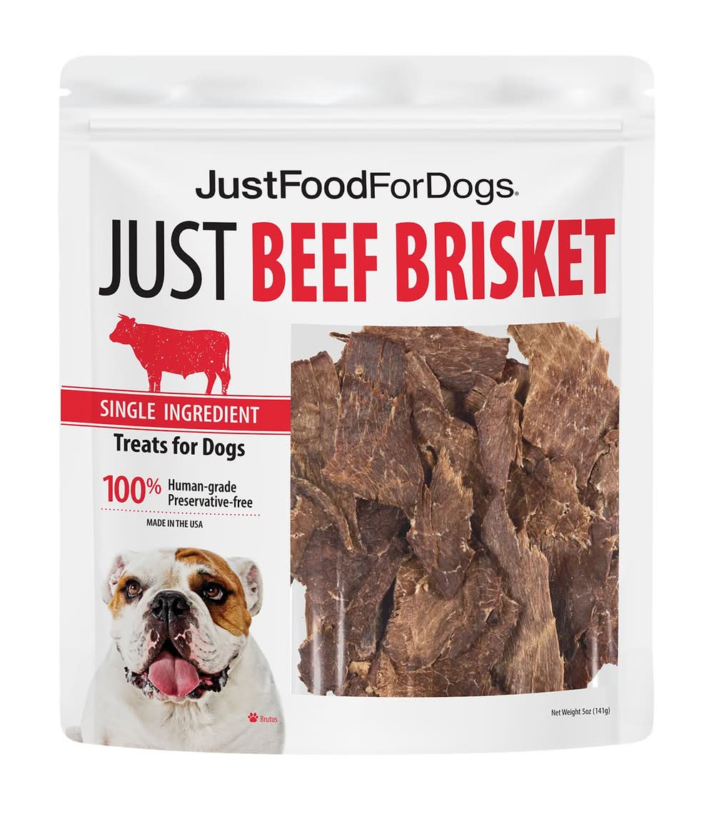 JustFoodForDogs Just Beef Brisket Single Ingredient Beef Brisket All Life Stages Dog Treats (Size: 5 Oz)