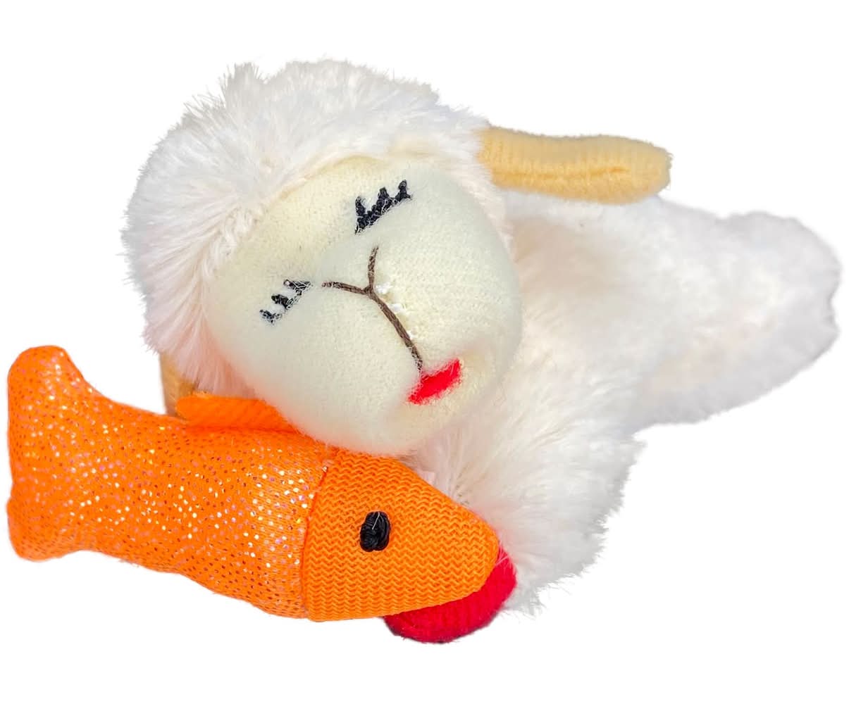 Multipet® Lamb Chop Cat Holding Sparkle Orange Fish Cat Toy (Color: Multi Color)