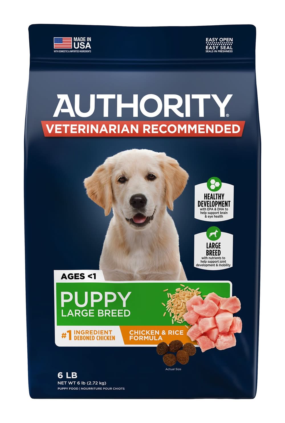 Authority® Everyday Health Large Breed Puppy Dry Dog Food - Chicken & Rice (Flavor: Chicken & Rice, Size: 6 Lb)