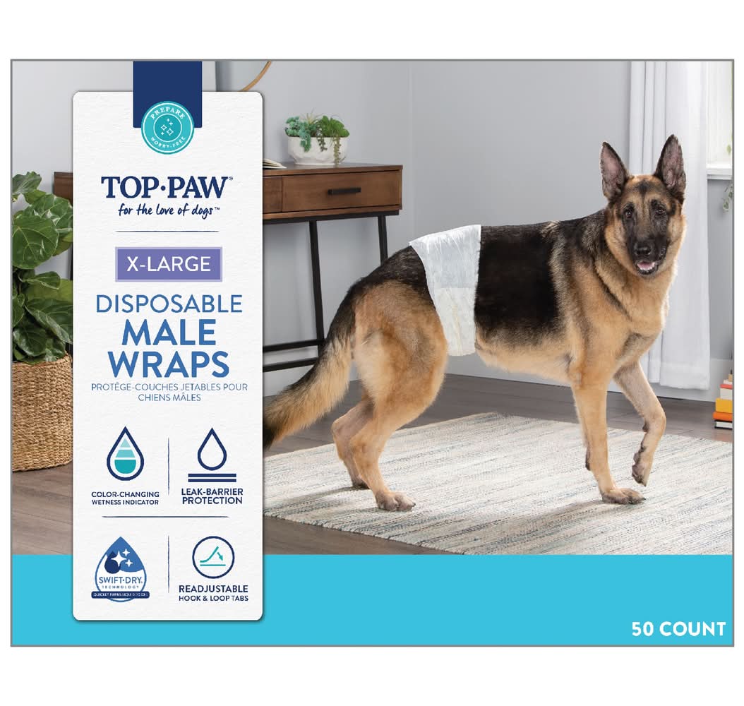 Top Paw® Disposable Male Wraps for Dogs, with Swift-Dry® Technology (Size: X Large)