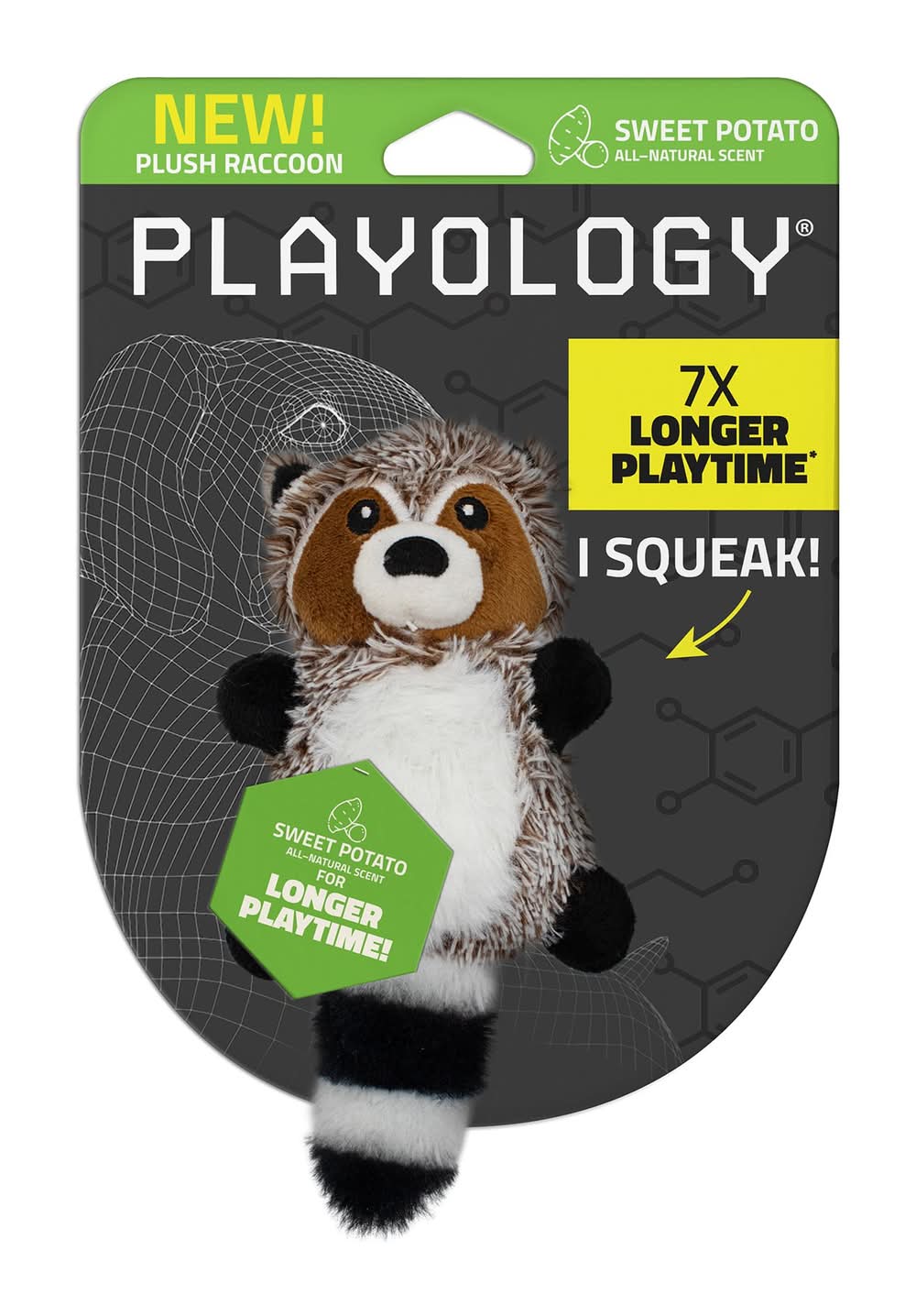 Playology Racoon Sweet Potato Scent Squeaker Plush Dog Toy (Color: Brown, Size: Small)