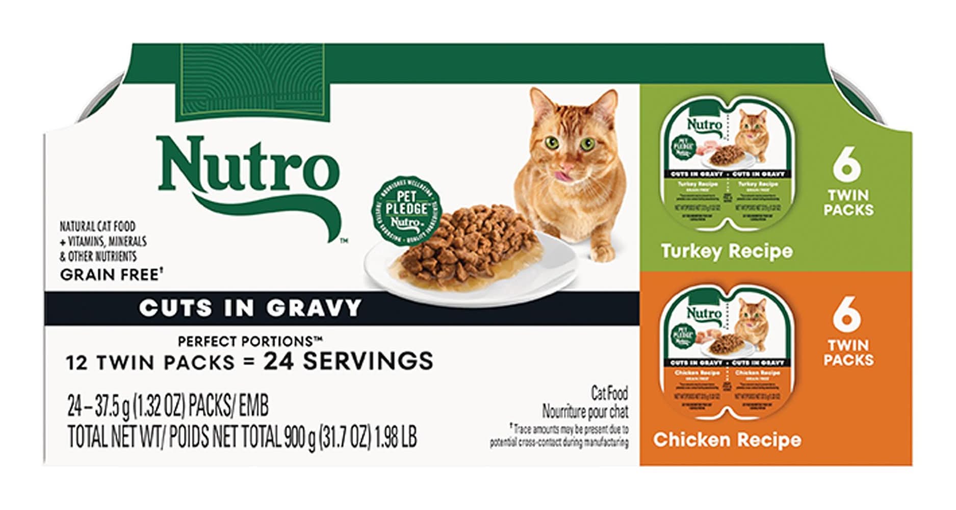 Nutro Perfect Portions Cuts in Gravy Adult Wet Cat Food -Non-GMO, Grain Free, Variety Pack, 12 Count (Flavor: Chicken & Turkey, Color: Assorted)