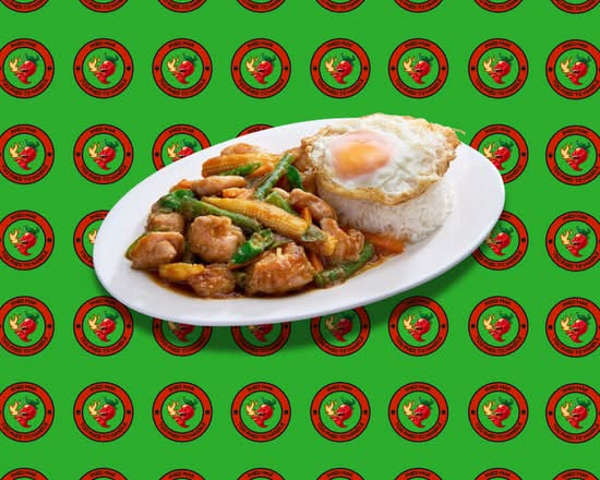 Pad Prik Khing / Red Curry Paste Stir Fry: Fragrant and zesty stir-fry with dry red curry paste, packing serious flavor in every bite. Stir-fried with green beans, carrot, bell, cabbage and your choice of protein in our House savory brown sauce.