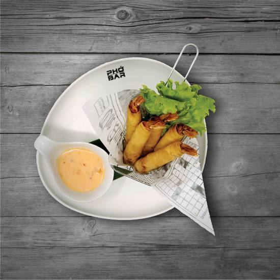 Tôm Hoả Tiễn Fried shrimp in wonton wrappers served with house aioli sauce.