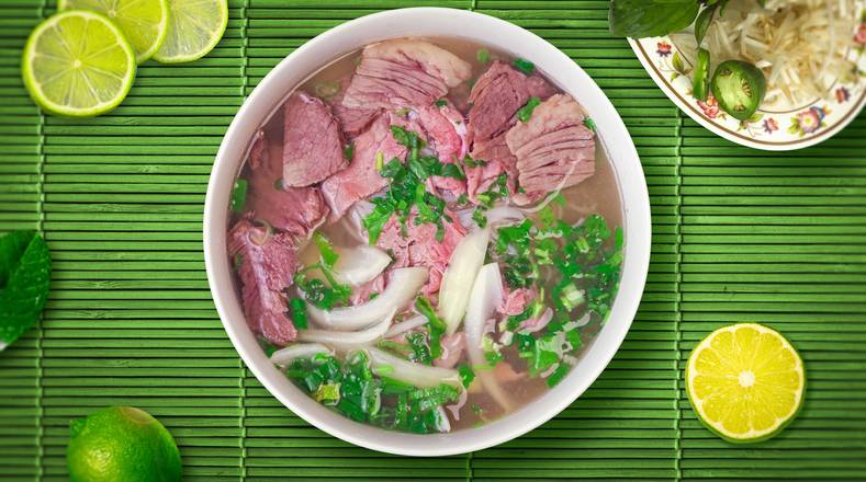 Indulge in a culinary delight with our 15. Steak Brisket Flank Pho! Savor the rich and savory broth, paired with tender meat slices and flavorful rice noodles. Elevate your dining experience with this exquisite dish.
