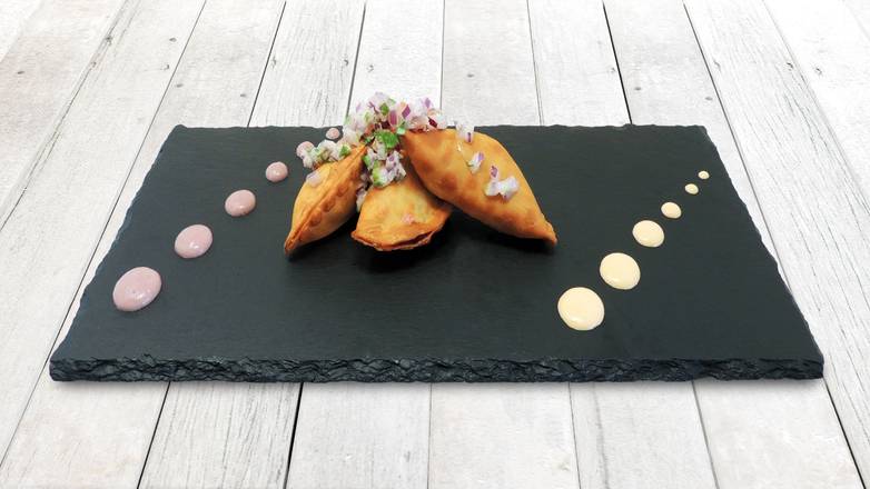 Filled with aji de gallina, a spicy Peruvian creamed chicken.