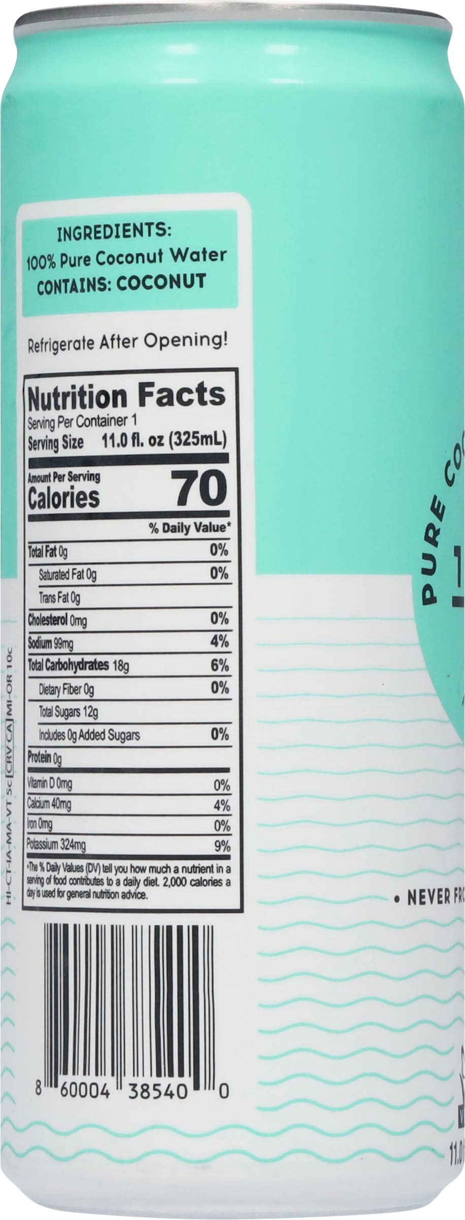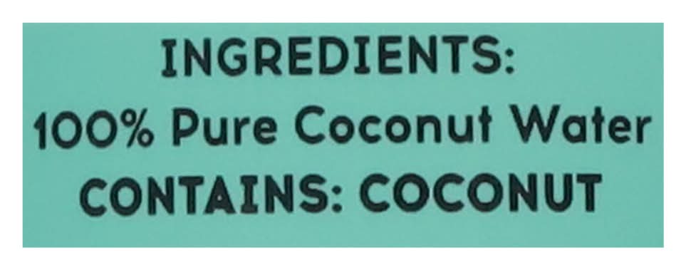 Ingredients: 100% Pure Coconut Water Contains: Tree Nuts