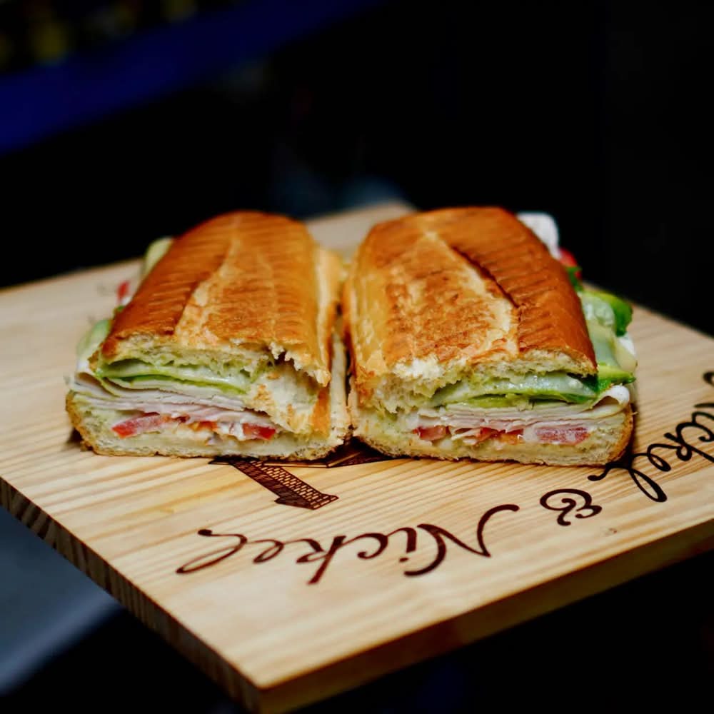 (Turkey Pictured) Grilled chicken topped with provolone, fresh basil, tomato, avocado, pesto mayo. Served on a French baguette.