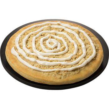 Dessert pizza with cinnamon sugar topping, streusel and icing.