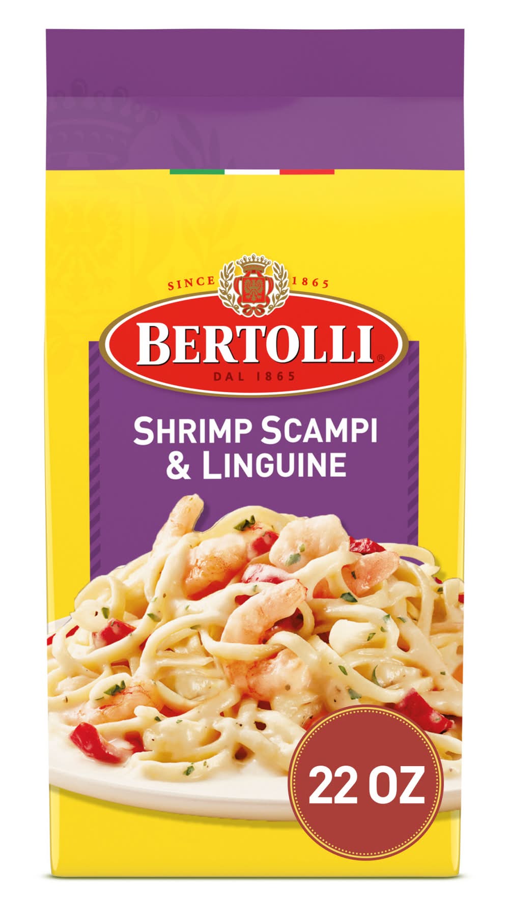 Experience a delicious, restaurant-style dining experience at home. Featuring shrimp with linguine and bell peppers in a creamy garlic sauce for frozen dinners with Italian-inspired flavor. Made with wholesome ingredients, this frozen meal ensures delicious and satisfying frozen entrees every time. Deliciously simple cuisine at your fingertips; these frozen pasta meals provide authentic Italian-inspired flavor in quick frozen meals that can be prepared in the comfort of your home. Simply cook this frozen food on the stove top according to the package instructions for easily prepared meals in minutes. Store this 22 ounce meal kit in your freezer until you're ready to enjoy. Bertolli's flavorful frozen skillet meals are thoughtfully prepared in Italian-inspired tradition. Premium Ingredients. 150 Years in the Making. • Flavor: Shrimp scampi & linguine • Packaging: Reusable