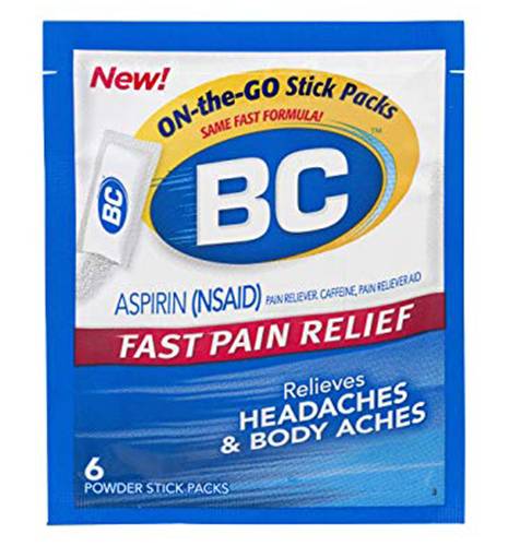 Turn pain into a distant memory with BC's Original Pain Relief Formula. Back in 1906, BC Powder was created to bring you that speedy headache relief you trust and have passed on ever since. BC's powerful combination of ingredients relieves your tough pain fast. Pour BC powder into a glass of water or place it right on your tongue. Any way you take it, BC stops pain fast. Brand: Bc