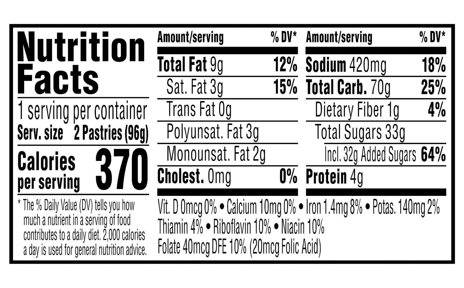 Toaster instructions: remove from pouch before heating. 1. toast on lowest setting. 2. let cool before eating. microwave instructions: 1. heat 3 seconds at a time in pouch until warm enough. 2. let cool before eating. freezer instructions: 1. put pouch in freezer. 2. wait 20 minutes. 3. enjoy that frosty tart. caution: if pastry is overheated, frosting / filling can become extremely hot and could cause burns. due to possible risk of fire, never leave appliance unattended while in use. children should be supervised. appliances vary. be sure your appliance is clean and functioning correctly. times given are approximate. to open lift seal and tear.