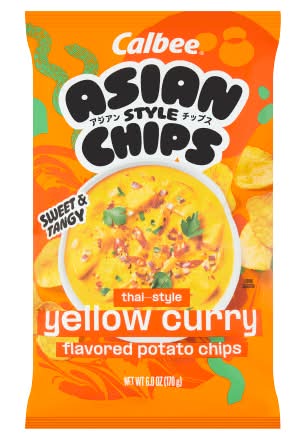 Calbee Asian-style chips bring you to a different world of flavor, inspired by the bold and authentic cuisines of Asia. Open a bag where each bite is an exciting adventure! When the thrill of discovery meets the fun of flavor, there's always something new to try. Inspired by the popular Thai dish, our Yellow Curry Asian-Style Potato Chips are seasoned with spices, herbs, and zesty lime. • Flavor: Yellow curry • Size: 6 OZ