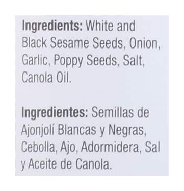 Ingredients: White and Black Sesame Seeds, Onion, Garlic, Poppy Seeds, Salt, Canola Oil Contains: Sesame
