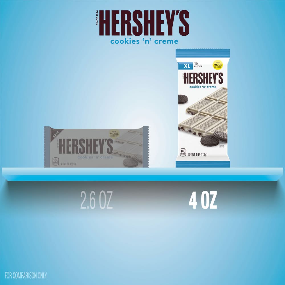 Hershey's Cookies N Creme Chocolate Candy Bar, XL (4 oz, 16 ct)