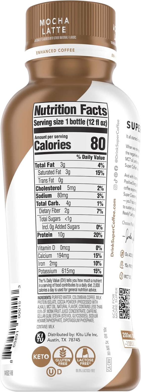 Super Coffee Sweet & Creamy Coffee Protein Drink, Mocha Latte (12 fl oz)