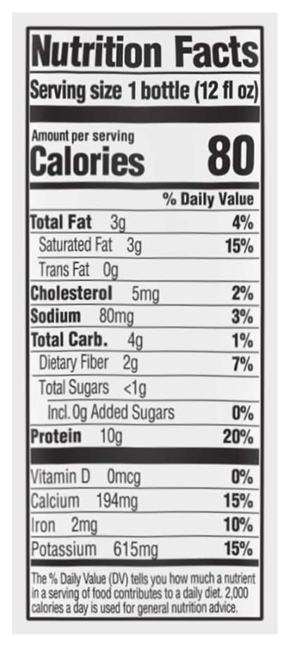 Ingredients: Purified Water, Colombian Coffee, Milk Protein Isolate, Cocoa Powder (Processed with Alkali), MCT Oil, Natural Flavor, Contains Less than 0.5% of: Monk Fruit Juice Concentrate, Caffeine, Gellan Gum, Stevia (Steviol Glycosides), Sodium Hexametaphosphate, Dipotassium Phosphate Contains: Milk Contains 20000mg of caffeine