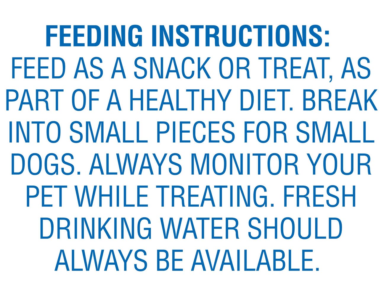 Tear to open zip to close. feeding instructions: feed as a snack or treat, as part of a healthy diet. break into small pieces for small dogs. always monitor your pet while treating, fresh drinking water should always be available.