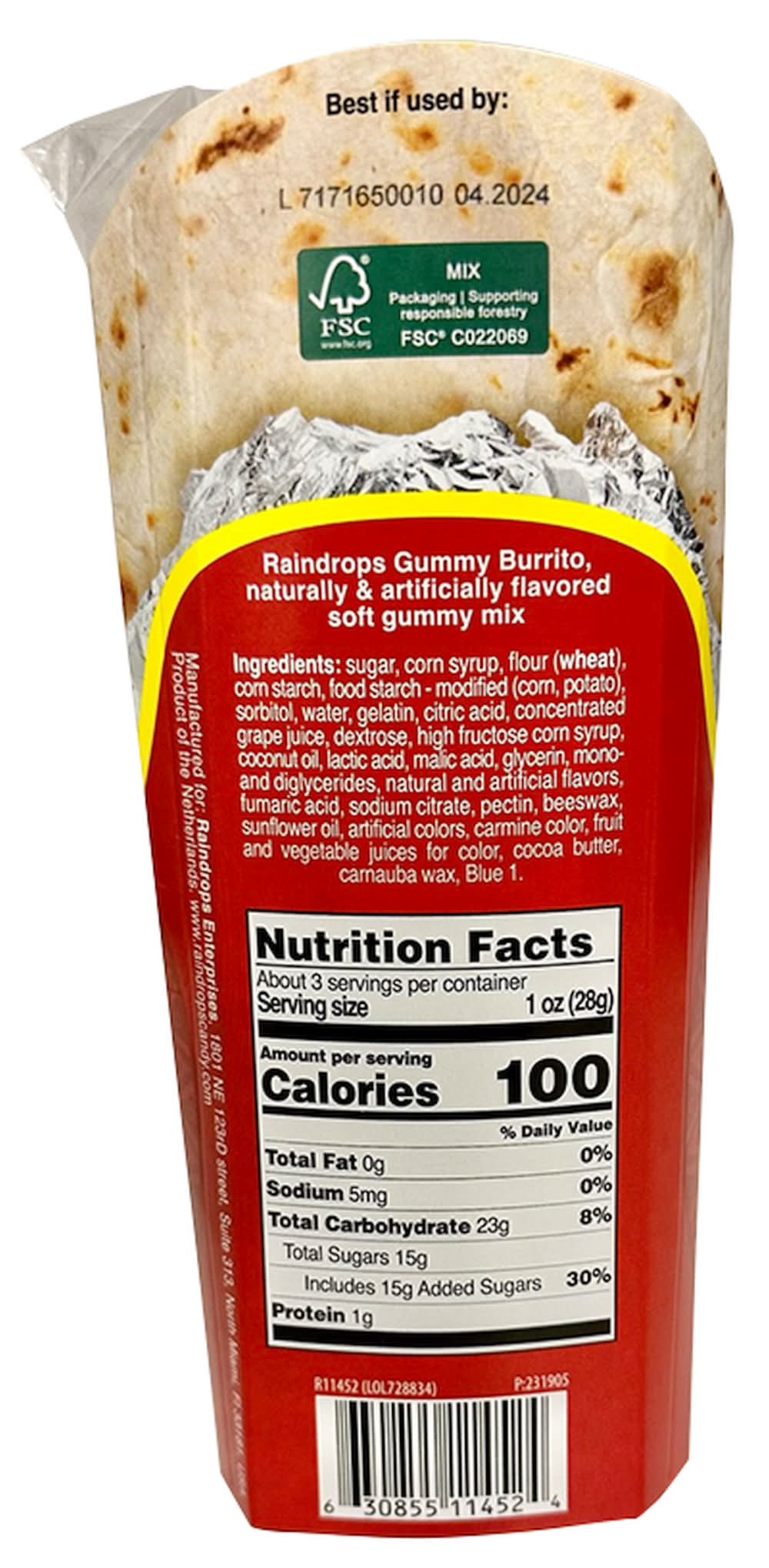 Raindrops The Original Gummy Candy Burrito Soft Gummy Mix (3 oz)