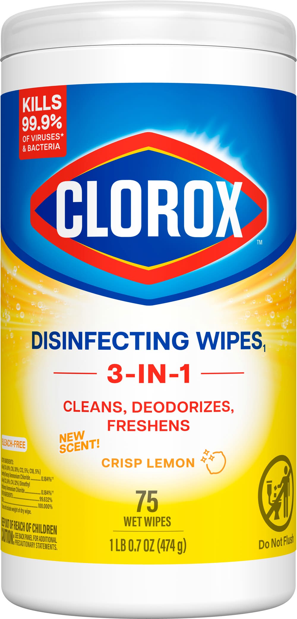 Clorox Disinfecting Wet Wipes, Crisp Lemon (16.7 oz, 75 ct)