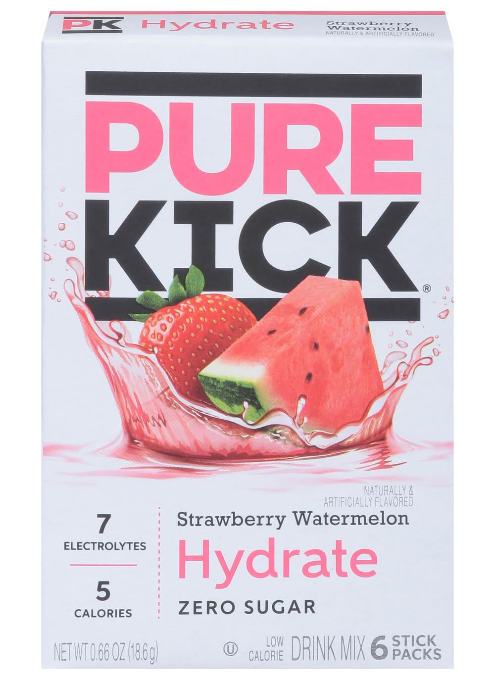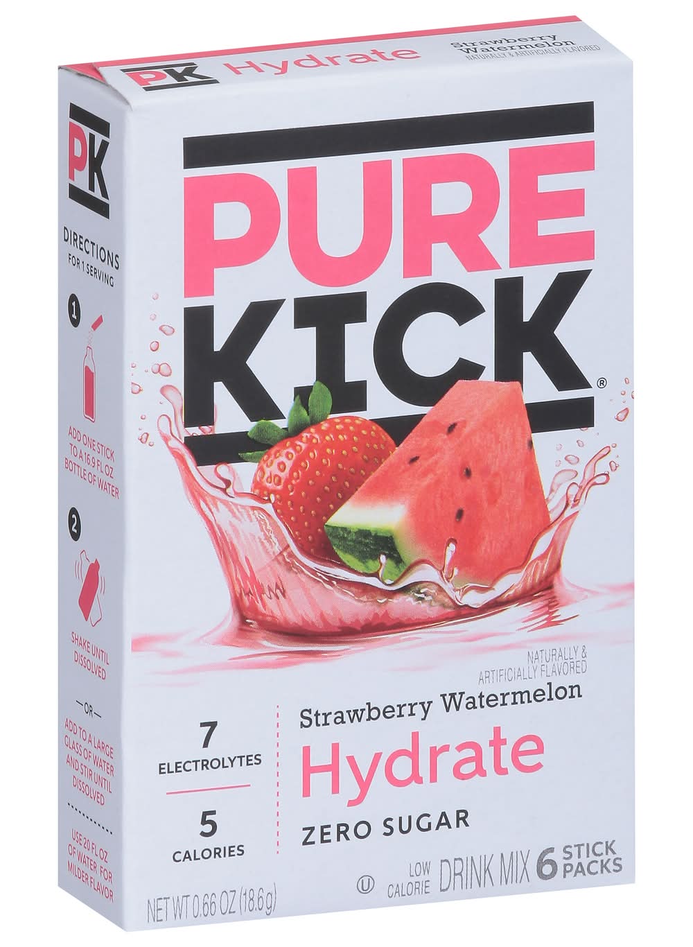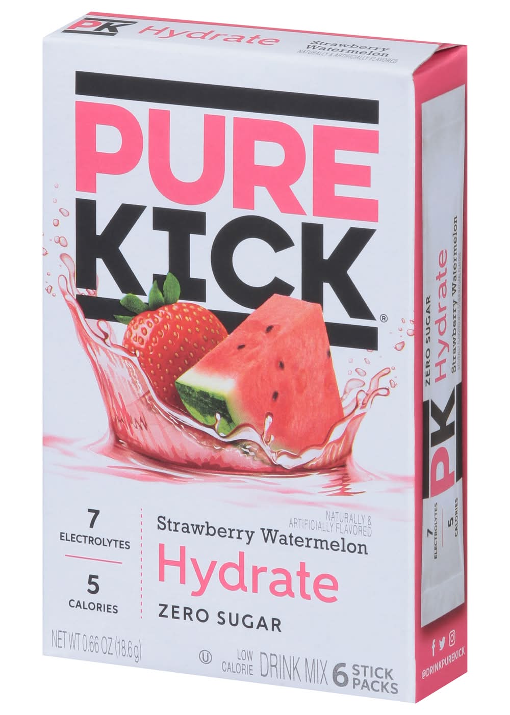 Pure Kick Zero Sugar Hydrate Drink Mix Stick, Strawberry-Watermelon (0.66 oz, 6 ct)