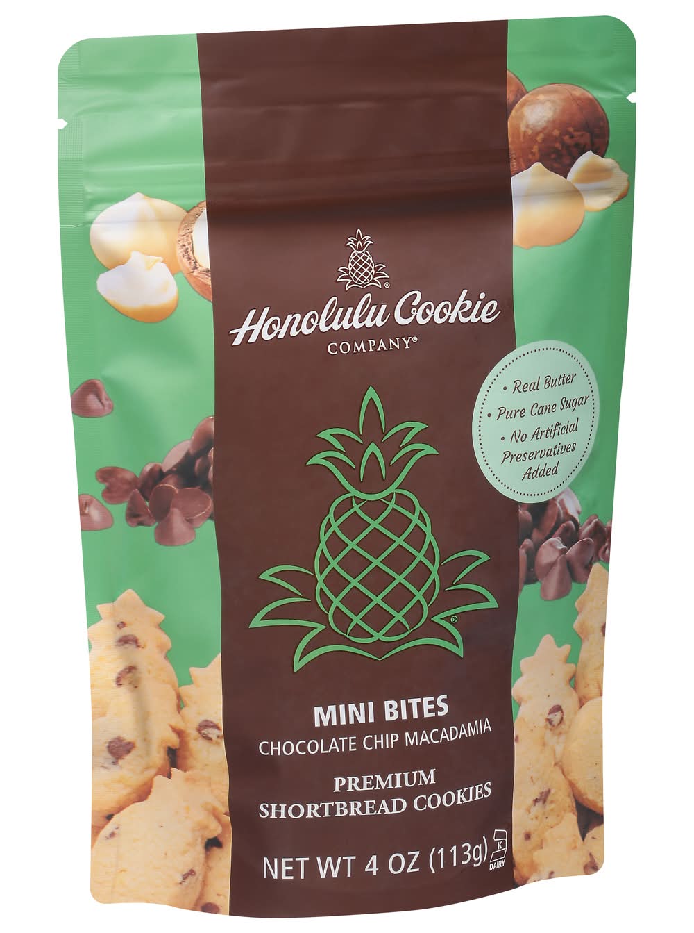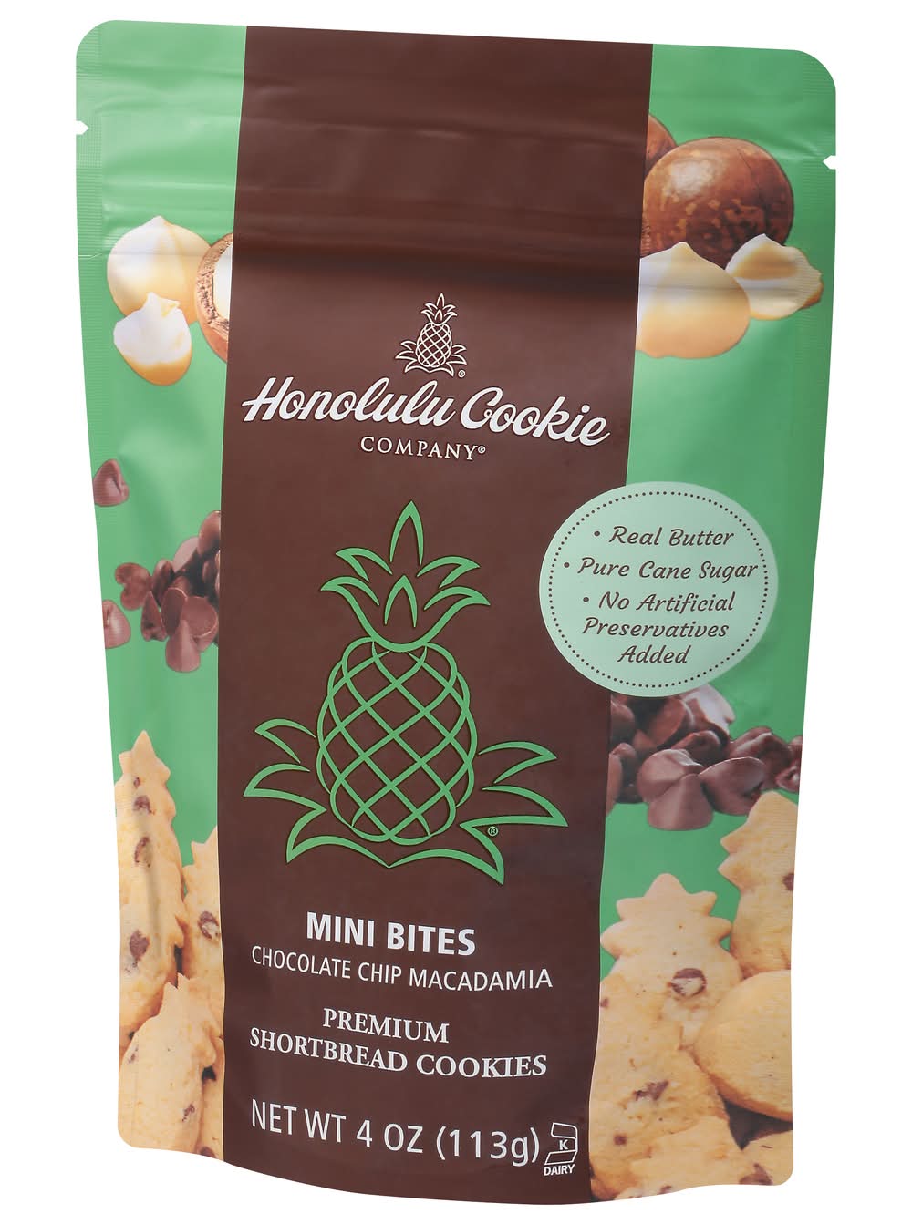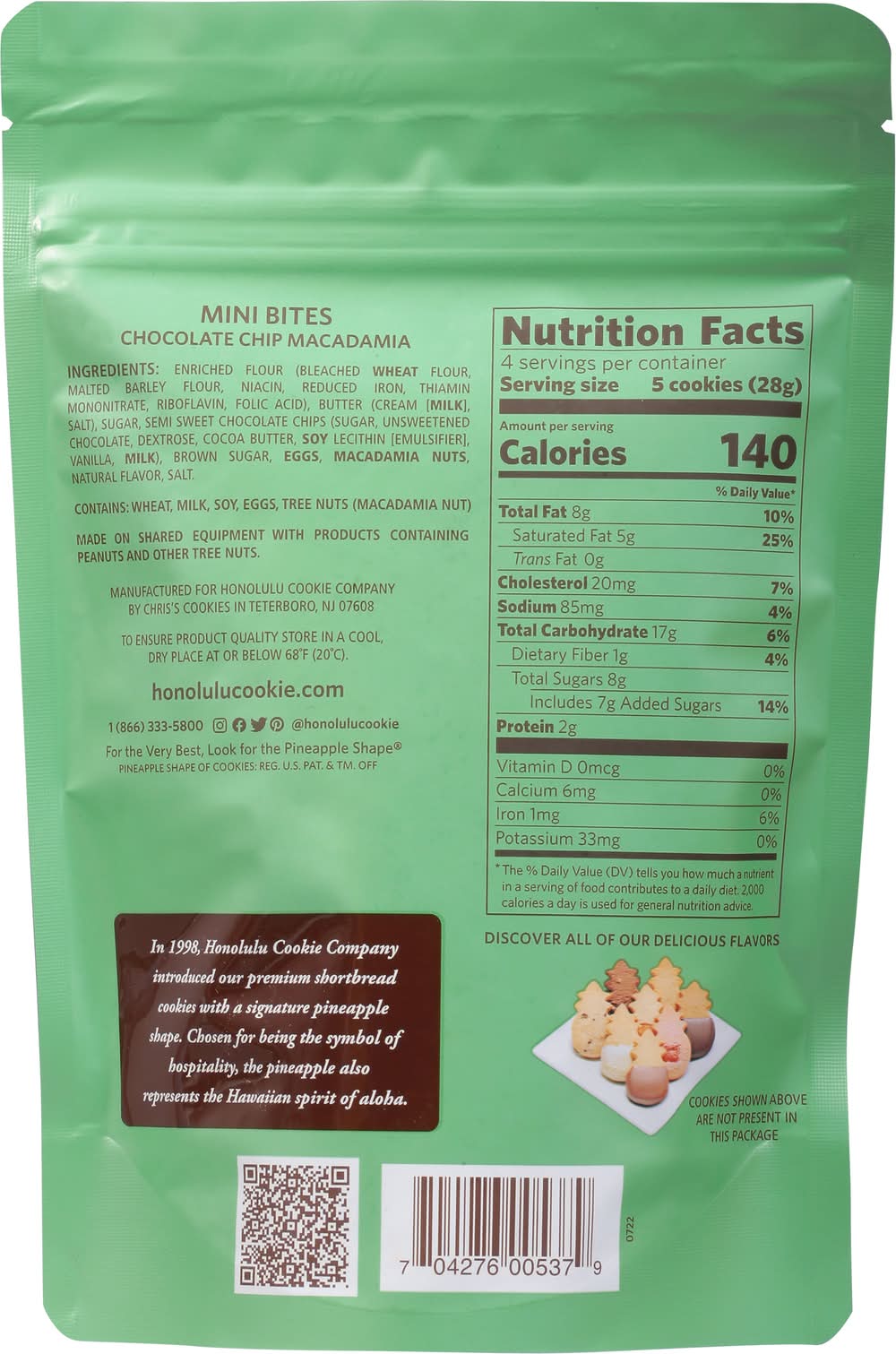 Honolulu Cookie Company Premium Mini Bites Chocolate Chip Macadamia Shortbread Cookies (4 oz)