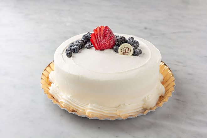 A Porto's Original! Sponge cake heavily-soaked with Rosa's original Tres Leches (condensed milk, evaporated milk, cream, and a touch of brandy) layered with whipped cream and a blend of blueberry, strawberry, and blackberry. Finished with whipped cream, fresh berries, and powdered sugar. Serves 10-12. Please note it is common to see an excess of our signature Tres Leches blend around the cake.