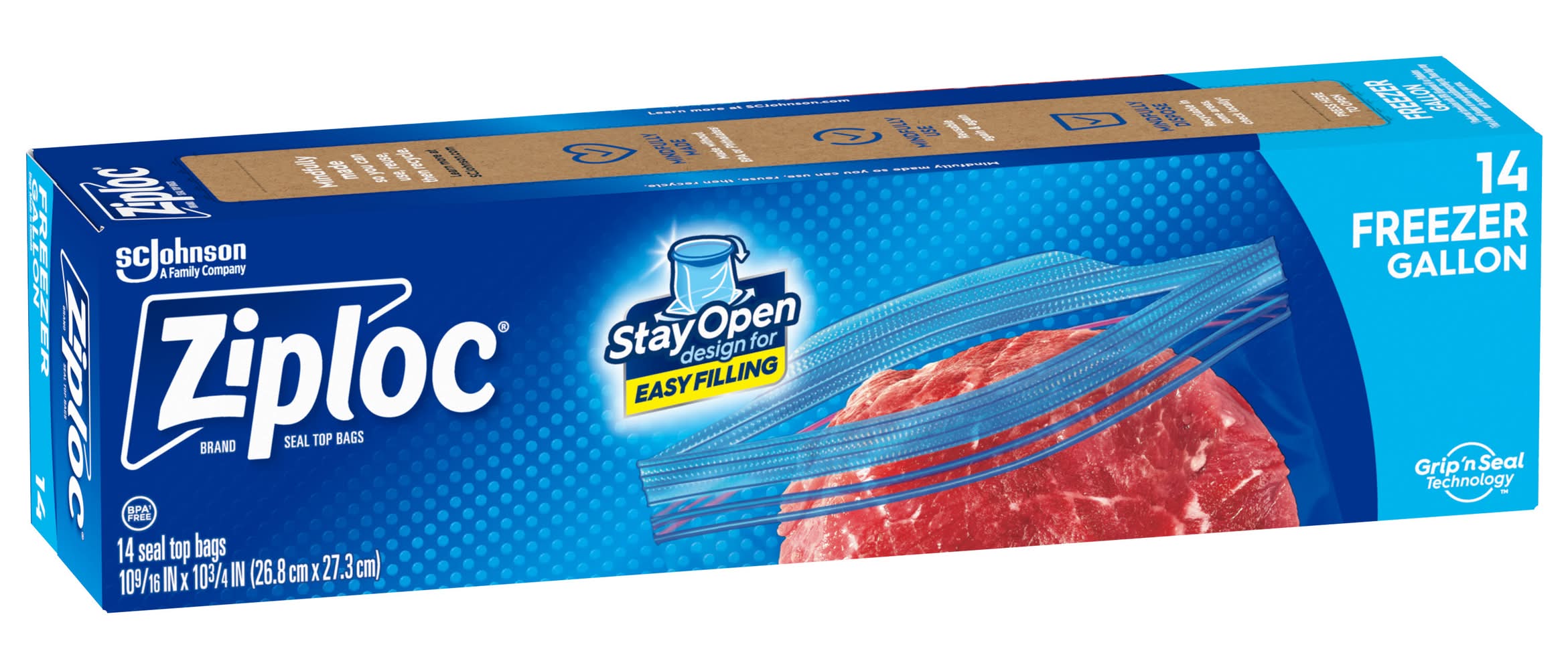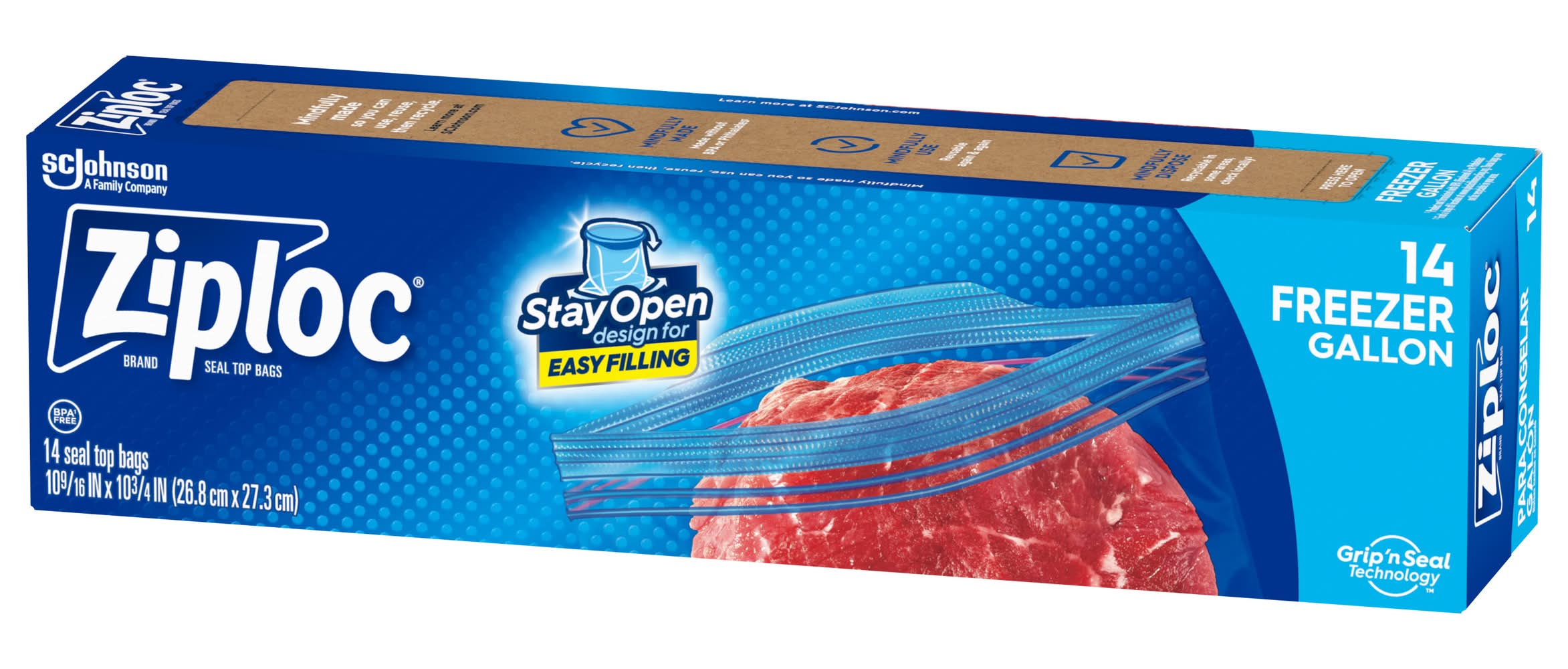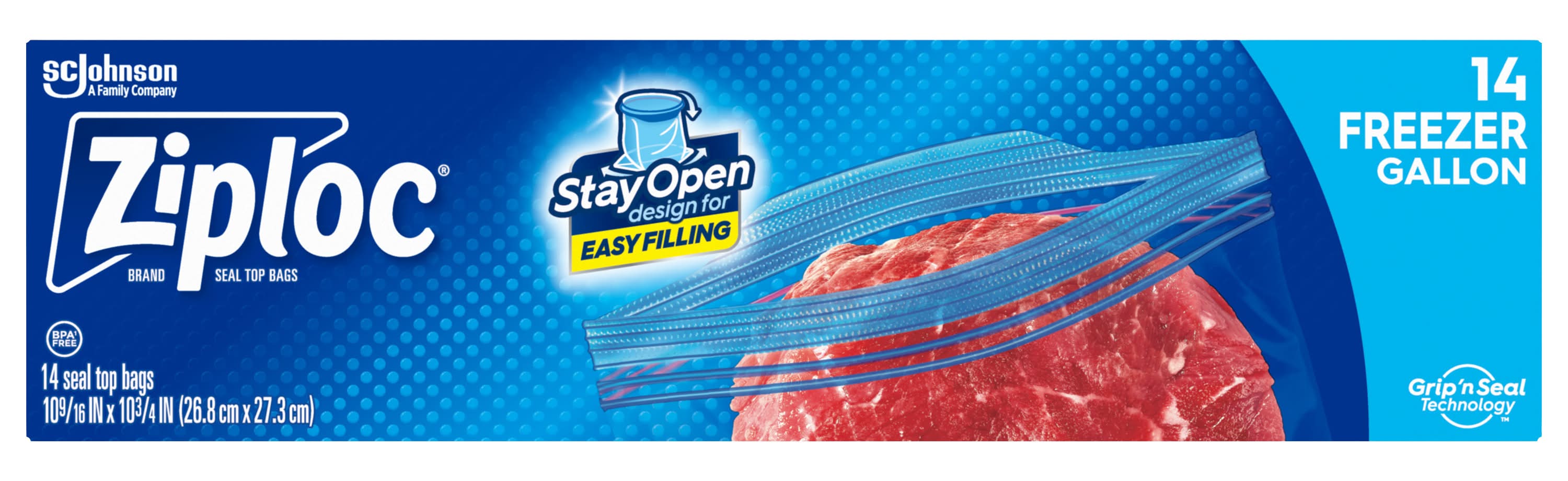Ziploc Freezer Gallon Bags is a gallon-sized product designed for use or consumption. • Sc Johnson, Racine, WI • Packaging: Reusable