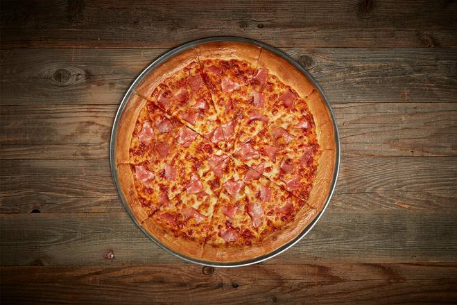 Our classic 14” Pizza with our Non-GMO Pizza Sauce made from Fresh Vine-Ripened Tomatoes.” Our two-cheese blend of Mozzarella Cheese and a generous portion Of Real Canadian Bacon.