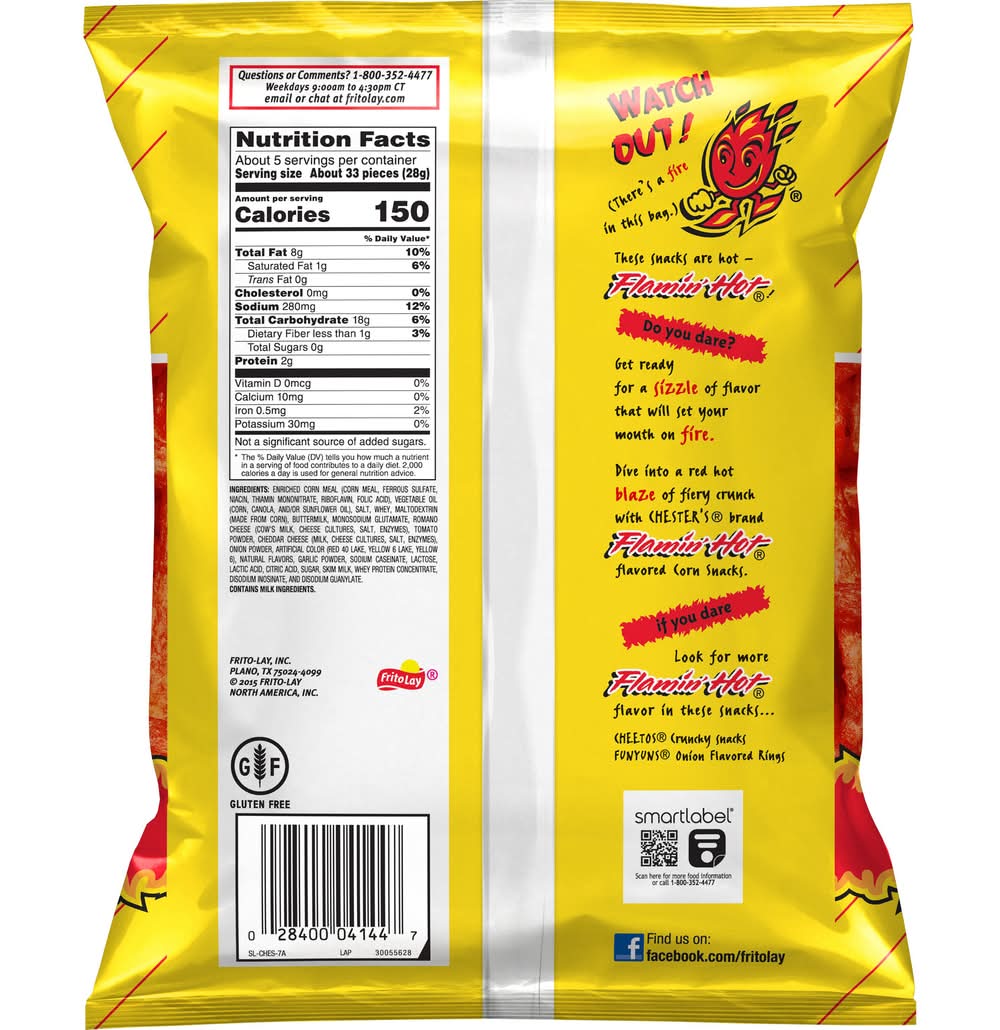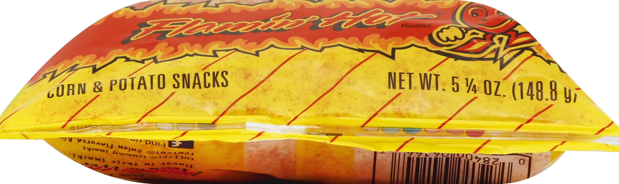 Guaranteed fresh until printed date or this snack's on us. Gluten free. Watch out! These snacks are Do you dare Get ready for a sizzle of flavor that will set your mouth on fire. Dive into a red hot blaze of fiery crunch Corn & Potato Snacks. • Flavor: Flamin hot • Frito-Lay, Inc., Plano, TX, 75024-4099
