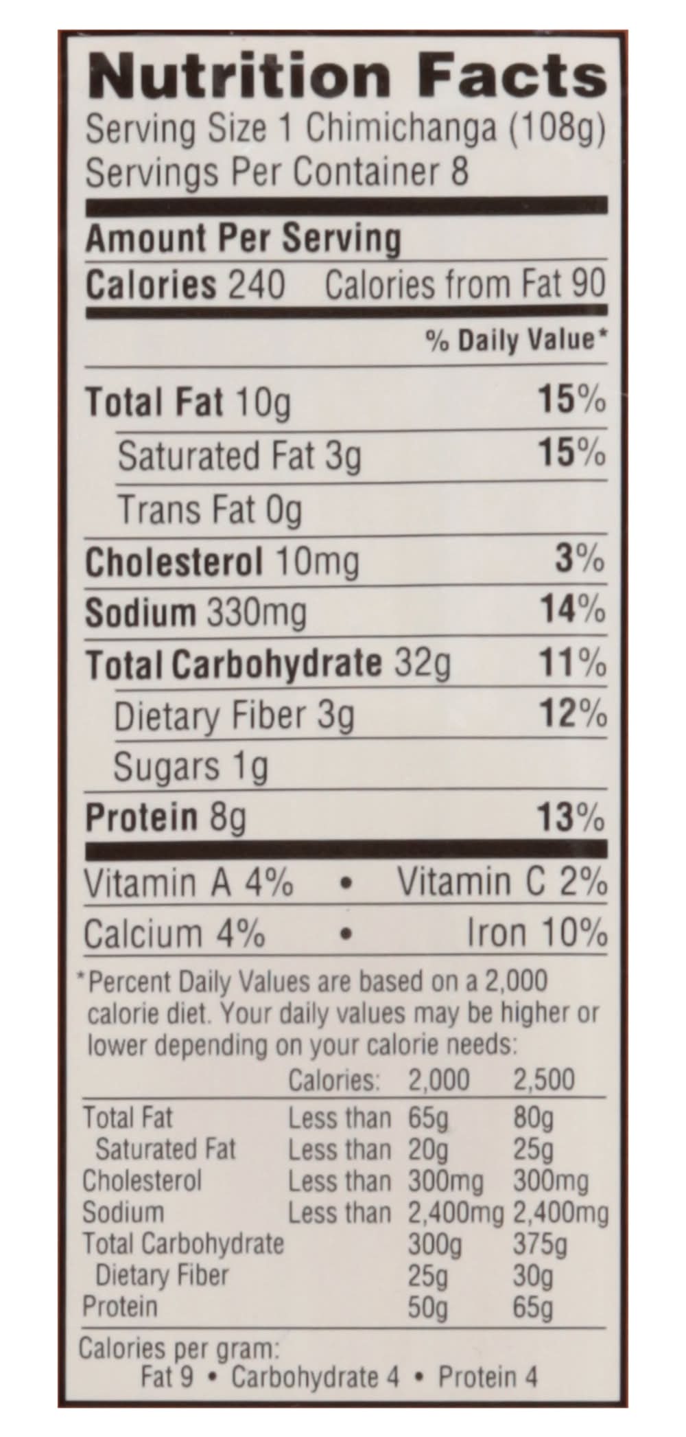 Chimichangas, Chili Cheese, 8-Pack Family Size Flavor: Bean-cheese-beef