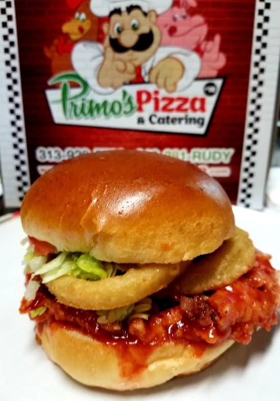 Tender, juicy Broasted Chicken Breast topped with Rudys Famous BBQ Sauce, Onion Rings and melted cheese, then topped with lettuce and tomato and pickle on a Brioche bun.