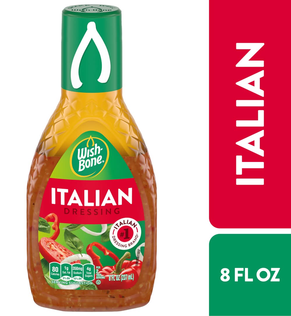Wish-Bone Italian Dressing adds bold flavor to your favorite dishes. Made with a unique blend of herbs and spices, this Italian dressing adds a flourish of old-world flavor to marinades, pasta salads and more. Wish-Bone Italian Dressing mixes into your salads easily, providing robust flavor in every bite. Not only is this Italian dressing for salad made without high fructose corn syrup, but it also contains no artificial preservatives or flavors. This Italian salad dressing complements a variety of fresh salads, adds flavor to a chicken marinade, and is tasty with beef or a side of vegetables. squeeze salad dressing bottle makes it easy to dispense the perfect amount. Refrigerate the dressing after opening. From robust Italian dressing to light vinaigrettes, Wish-Bone has what you need to make your dishes amazing. • Brand: Wish-bone • Flavor: Italian • Number of servings: 8
