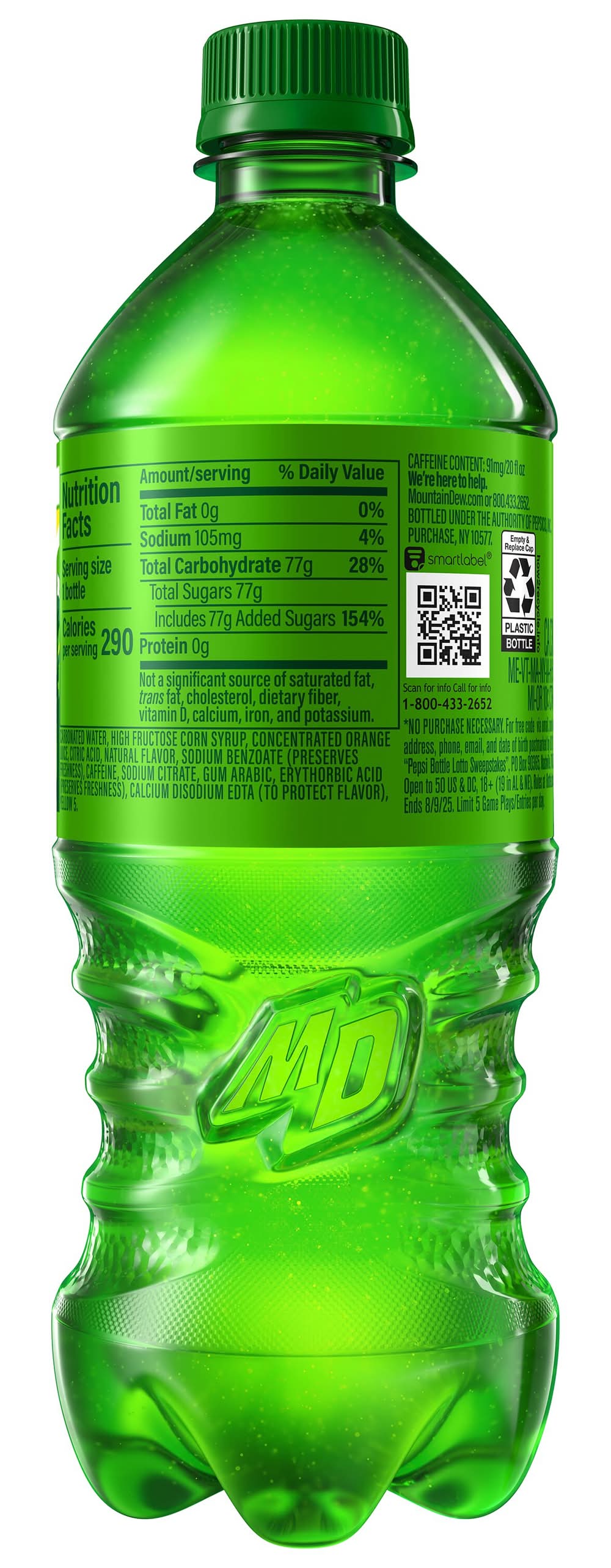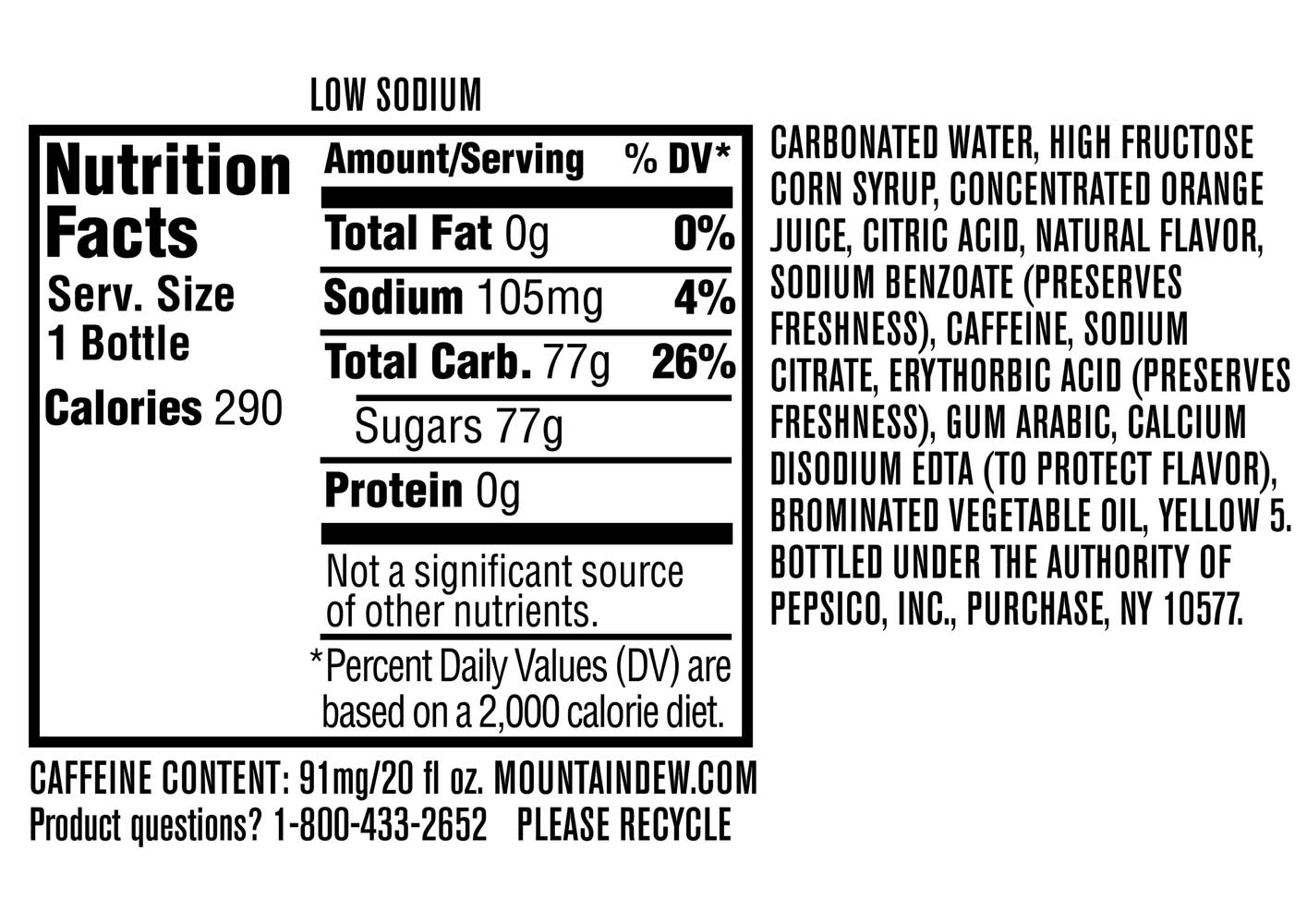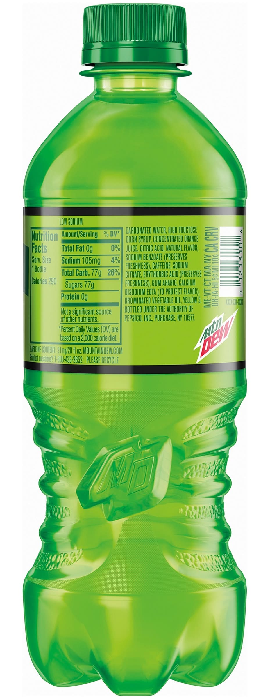 The original, the one that started it all. Mountain dew exhilarates and quenches with its one of a kind, bold taste. Enjoy its chuggable, intense refreshment. Crack open a cold can of mountain dew and refresh your taste buds.The original instigator, refreshes with its great taste. • Brand: Mountain dew • Pepsico, Inc., Purchase, NY, 10577 • Packaging: Reusable
