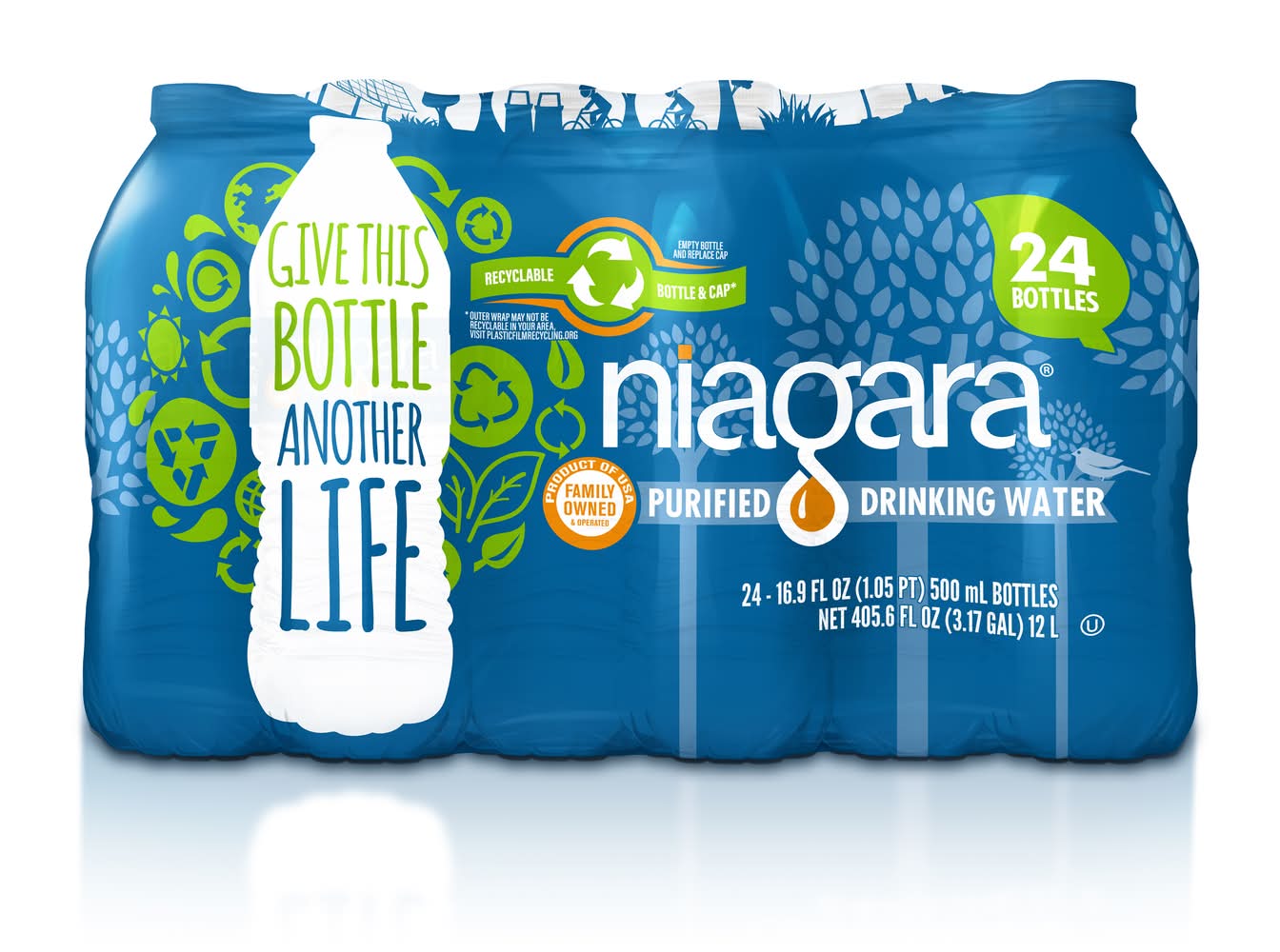 • Brand: Niagara • Pack size: 24 • Niagara Bottling, LLC, Ontario, CA 91764 • Packaging: Reusable