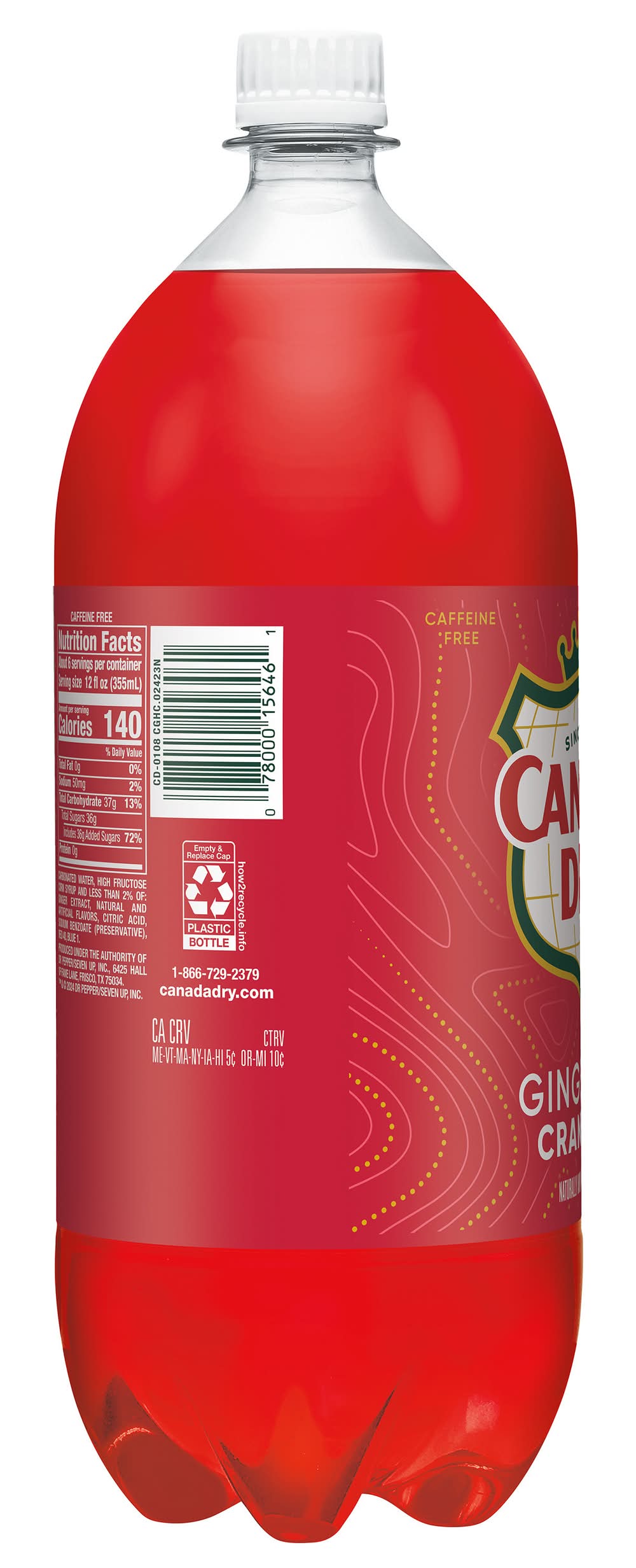 This Carbonated Beverage Is Made With Real Ginger Taste With a Refreshing Pop of Crisp Cranberry Flavor, Delivering the Ultimate Seasonal Blend That Is the Perfect Mixer for Holiday Entertaining and Is Caffeine Free. There Comes a Time When We All Need a Break from the Treadmill of Life, and There’s Only One Thing to Do During Those Moments When We Need an Escape from Stresses and Obligations... Grab an Ice-cold Can of Canada Dry Cranberry Ginger Ale, and Sip Into Your Comfort Zone. Whether That Means You’re Sitting on Your Front Porch Swing, Listening to Your Favorite Podcast or Just Taking in a Quiet Moment for Yourself, Canada Dry Cranberry Ginger Ale Is the Perfect Ginger Ale to Make It Even Better. and It's Caffeine Free! Once Transported to the Comfort Zone, You Can Enjoy the Refreshing Ginger Taste That Is Made With Only High Quality Ingredients, Soothing You With Each Comforting Sip. • Flavor: Cranberry • Dr pepper/seven up, inc., 5301 Legacy Drive,Plano,TX,75024,866-729-2379 • Packaging: Reusable