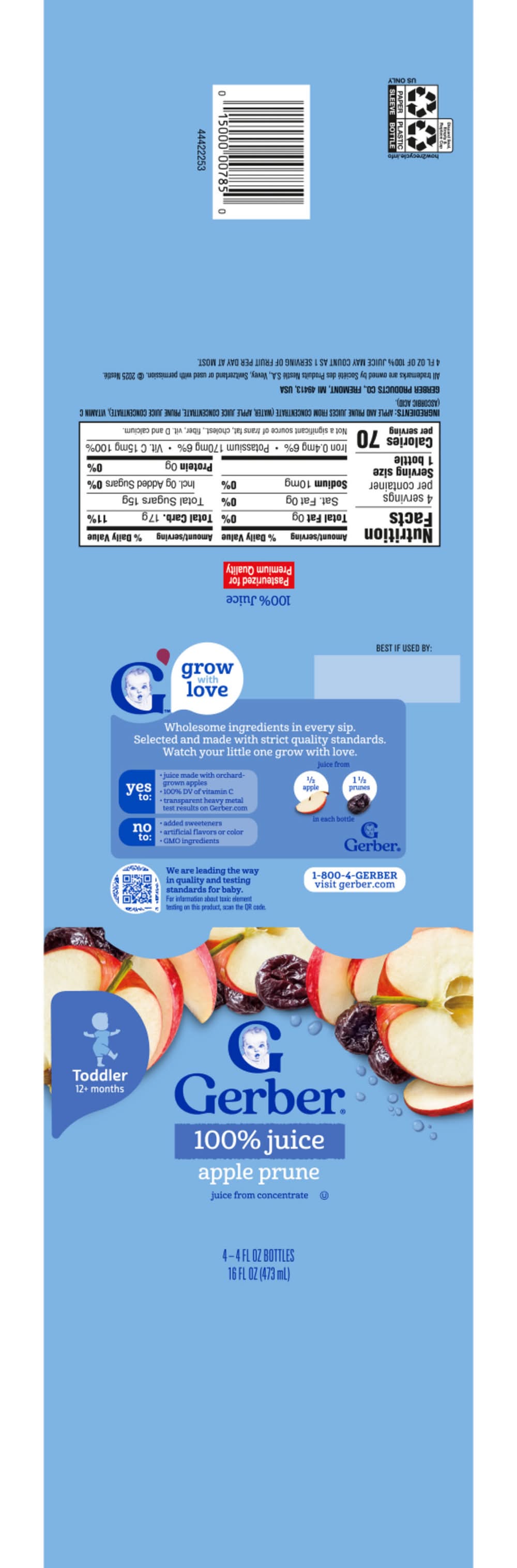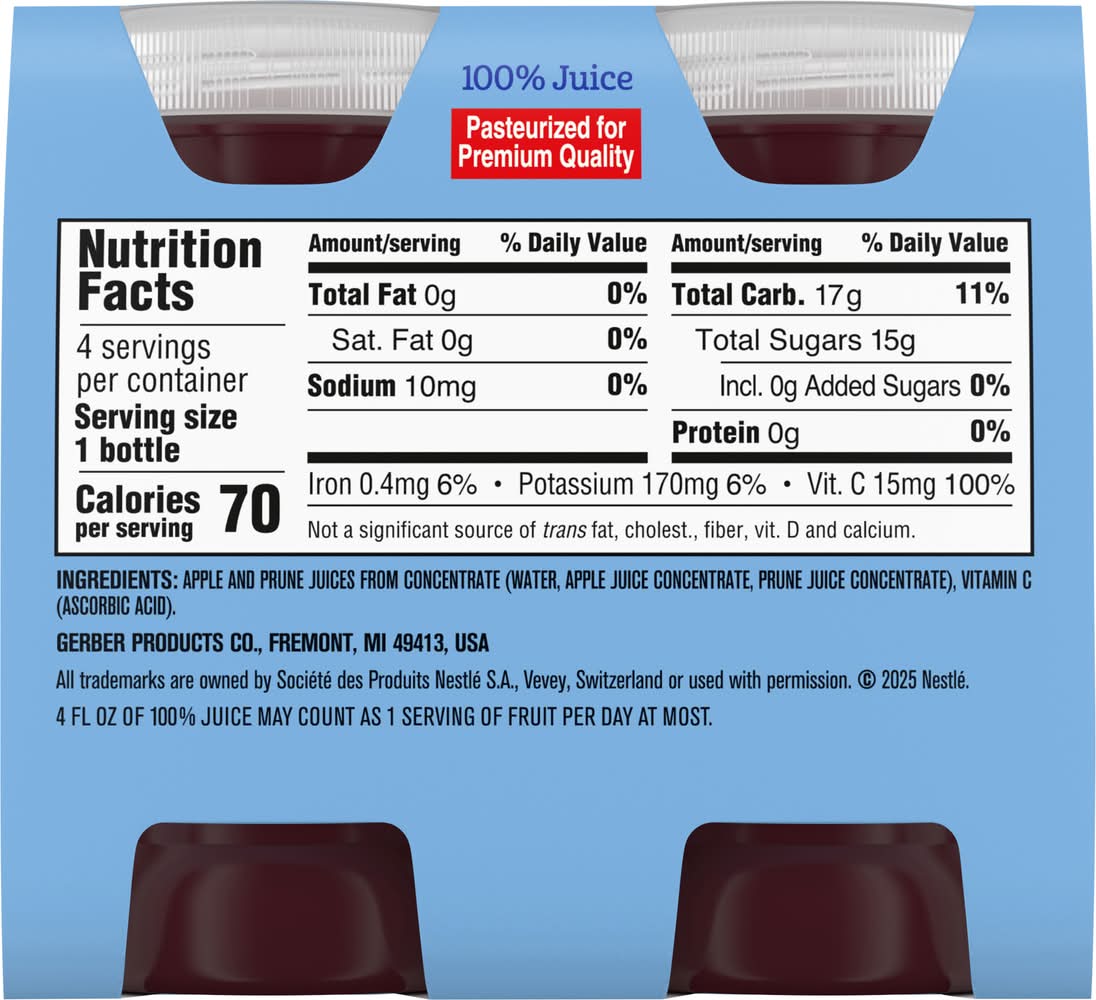 Toddler 12+ Months Apple Prune Juice • Gerber, Fremont ,MI , 49413 • Packaging: Reusable • $0.20 deposit included