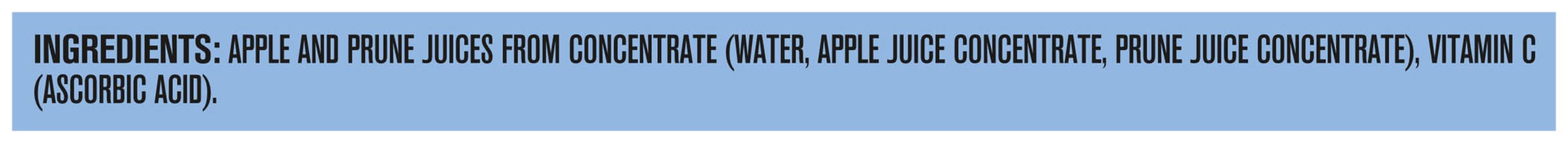 Ingredients: Apple and Prune Juices from Concentrate (Water, Apple Juice Concentrate, Prune Juice Concentrate), Vitamin C (Ascorbic Acid)