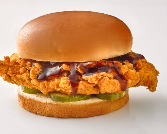 2 Double Breaded Chicken Tenders smothered in Honey BBQ Sauce on a Brioche Bun with Dill Pickle Slices
