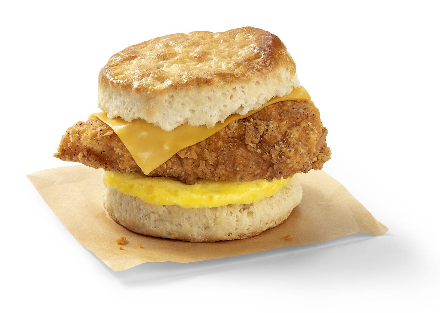 Double Breaded Chicken Tender, Fresh Made Egg Patty, and American Cheese on a Fresh Baked Biscuit.