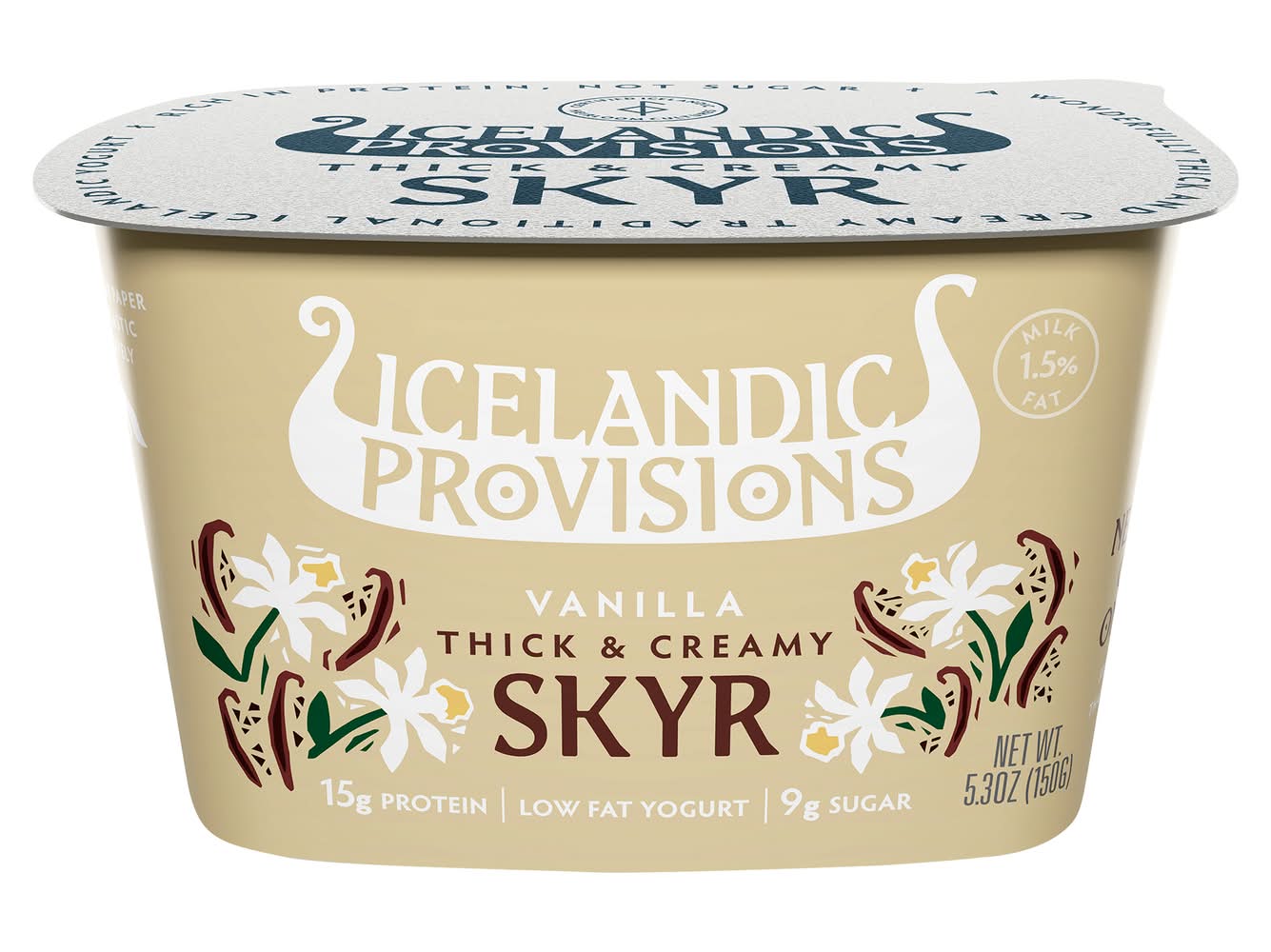 We only partner with farmers that agree to not use rBGH (According to the FDA, no significant difference has been found between milk from rBGH-treated and non-rBGH-treated cows). Recycle paper and plastic separately. Made with original Skyr cultures. Protein packed Skyr (skeer) has been a provision of Icelanders for nearly 1,000 years. Our Skyr was developed with Iceland's oldest farmer-owned dairy. It is the only Skyr available in the US that contains Icelandic Heirloom Skyr cultures that Icelanders have been enjoying for centuries. Our heirloom cultures help make our Skyr thick, creamy and delicious. Contains probiotics. Proudly made in Batavia, NY with domestic and imported ingredients. • Flavor: Vanilla • Icelandic Provisions., New York, NY, 10017