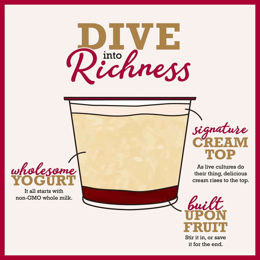 Ingredients: Cultured Pasteurized Whole Milk, Cane Sugar, Peaches, Honey, Pectin, Maple Syrup, Locust Bean Gum, Natural Flavor. 5 Live Active Cultures: S. Thermophilus, L. Bulgaricus, L. Acidophilus, Bifidus and L. Paracasei. Contains: Milk